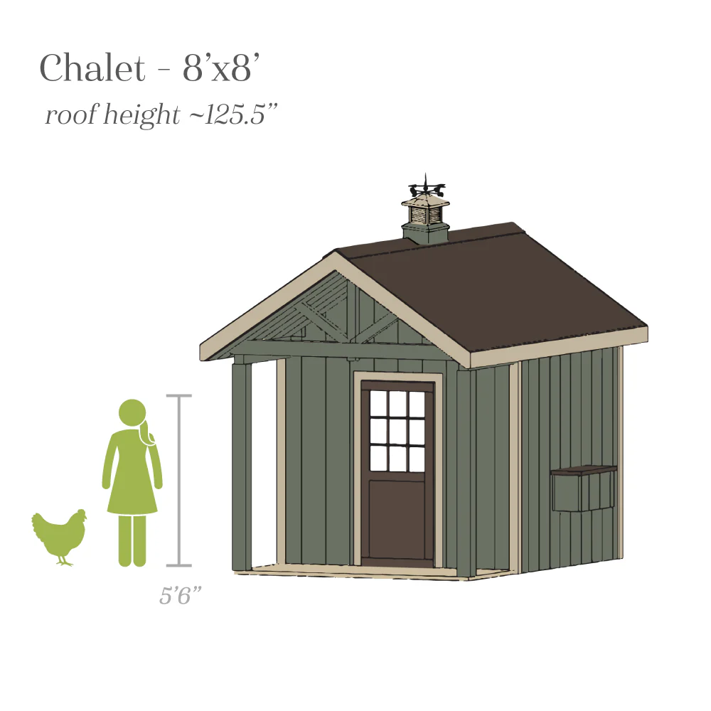 The Chalet Coop was designed with mountain homes and modern farmhouse style in mind! If you are looking for a large chicken coop with a true wow-factor for your property, then this coop is for you! The modern yet rustic appeal of the 10×8 Chalet Coop, coupled with its incredible porch (with enough room for seating), impressive height, and storage area, makes this coop more than desirable.