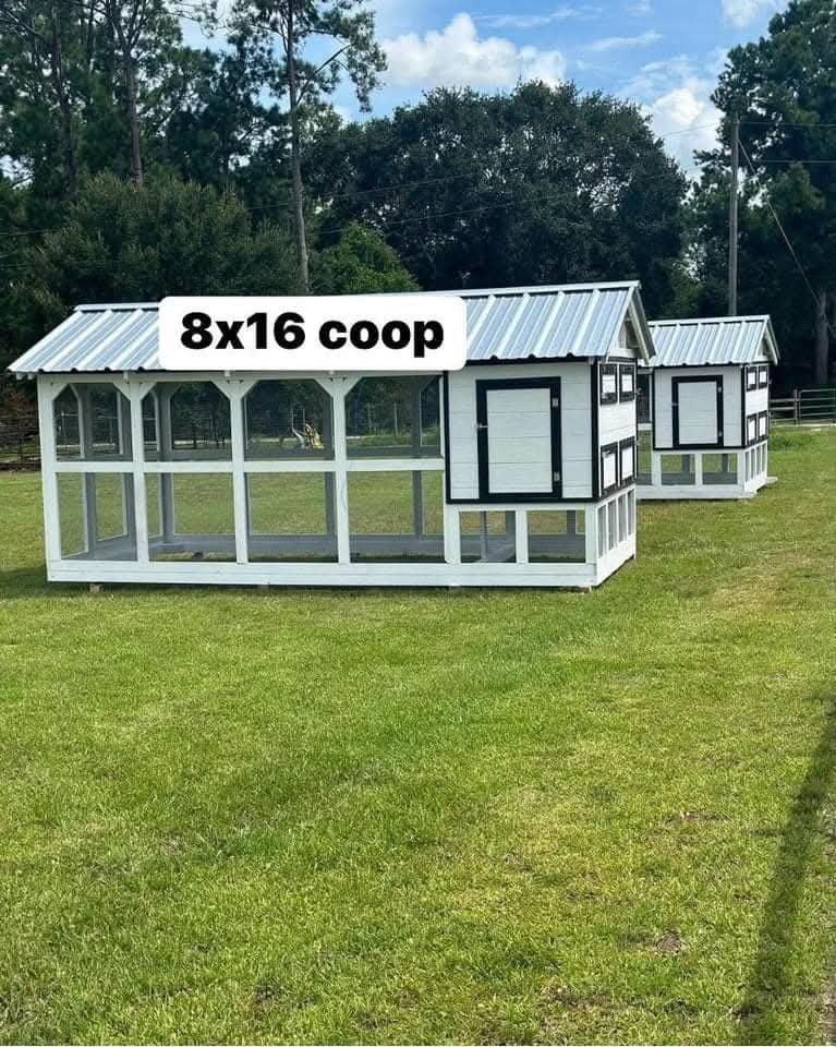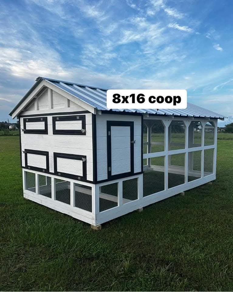 This spacious 8×16 chicken coop is designed to provide a comfortable and secure environment for your flock. With ample room for movement and nesting, this coop is perfect for both hobbyists and small-scale poultry farmers. It features a sturdy construction, ensuring longevity and safety for your birds.