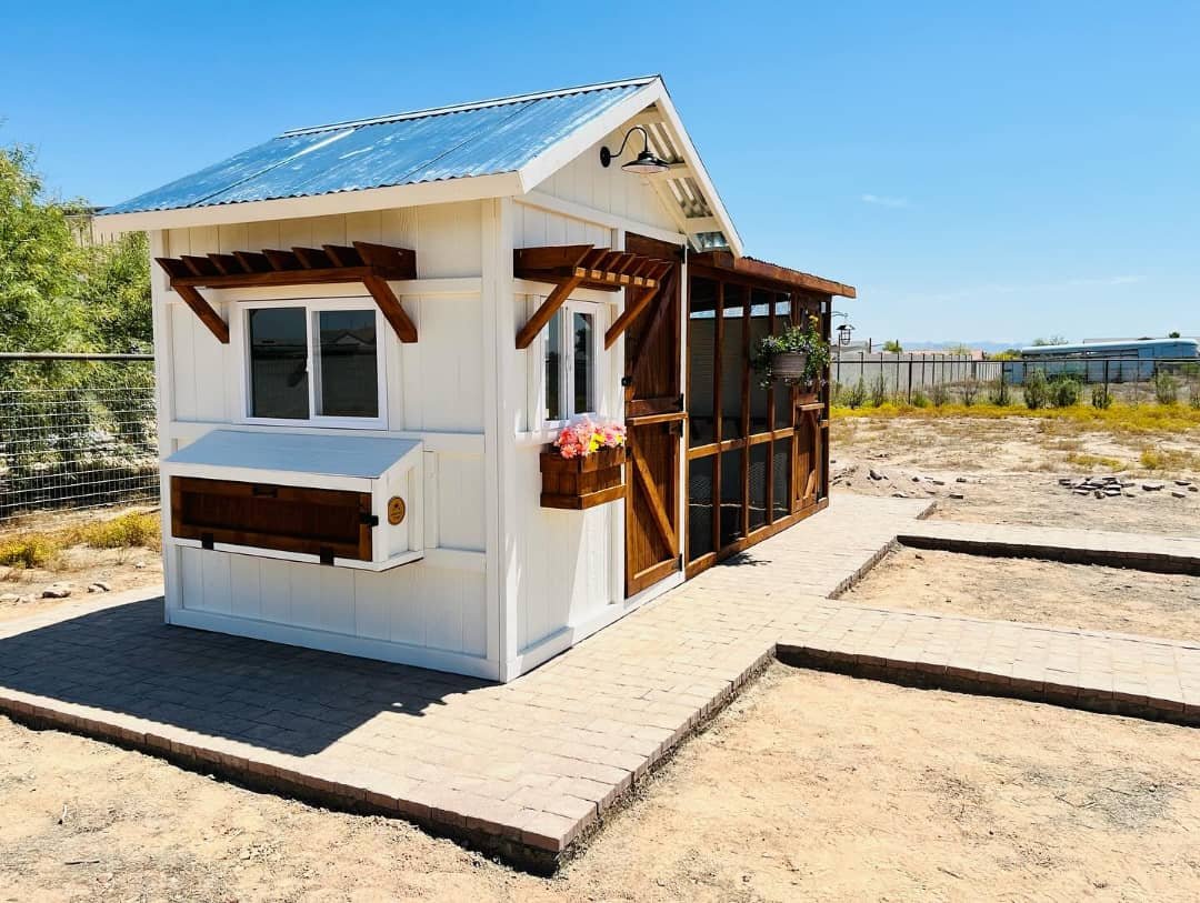 •Capacity: Accommodates up to 6 chickens•Materials: Durable, weather-resistant wood with a charming white and brown finish•