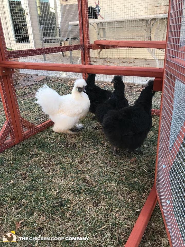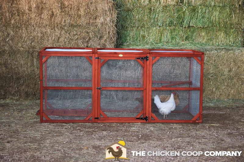 There are two roosting rods included and designed not only for your hens to roost but also to add stability to the run. Instructions walk you through the simple process of assembly (each piece is labeled, and we pre-drilled holes for you). In addition, there is a door in the run that has a bolt latch and two latches with two carabiners. Run footprint: 31.5 inches x 85.5 inches.