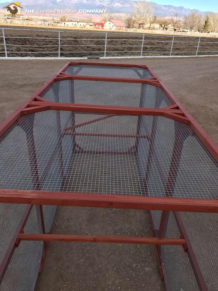 There are three roosting rods included and designed not only for your hens to roost but also to add stability to the run. Instructions walk you through the simple process of assembly (each piece is labeled, and we pre-drilled holes for you). In addition, there is a door in the run that has a bolt latch and two latches with two carabiners. Run footprint: 39.5 inches x 101.5 inches.