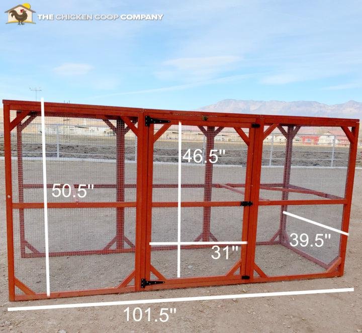 The Rhode Island Homestead XL run extension will provide extra space to increase your flock size or just give more room to your current flock. This run extension was specifically designed for our Rhode Island Homestead Coop; however, it can be fashioned for other co-ops. The run is 50.5 inches tall x 39.5 inches wide x 101.5 inches long.